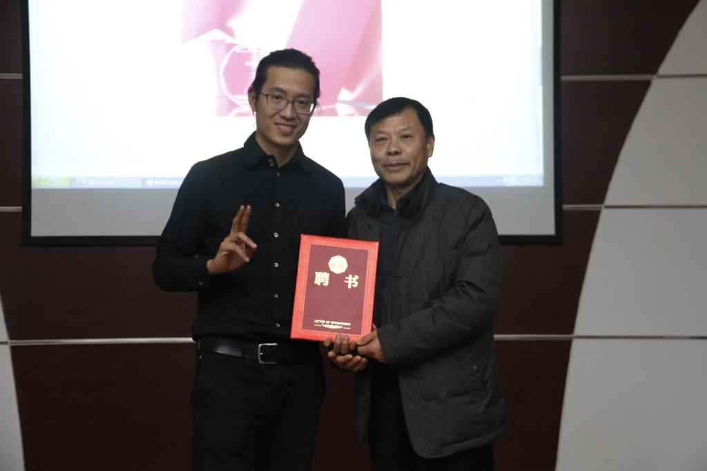 副经理王变奇代表公司对吕海强老师来到公司举办讲座表示感谢,并给吕海强颁发了公司客座教授聘任证书。王变奇还把自己珍藏的线装版“字圣”许慎的《说文解字》和yl23411永利青年剪纸艺术家陈明杰老师的剪纸作品《门神》赠予吕海强,吕海强对此深表感谢。