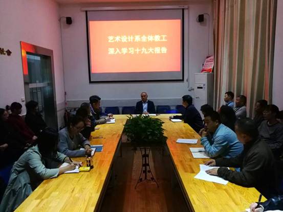 10月20日下午,yl23411永利组织全体教职工在美术馆一楼会议室深入学习十九大报告。学习前,首先全系教工观看了习近平总书记在十九大作报告的视频,随后系主任王群星同志深入解读了习近平总书记做的十九大报告,他表示完全赞同习近平总书记做的报告,并重点对中国特色社会主义进入新时代的历史定位以及我国社会主要矛盾已经转化为人民日益增长的美好生活需要和不平衡不充分发展的主要矛盾,以及新时代中国特色社会主义思想的形成、坚定文化自信、推动社会主义文化繁荣昌盛、加快生态文明体制建设、建设美丽中国、坚定不移全面从严治党,不断提高党的执政力和领导水平等内容,结合实际进行了认真解读。