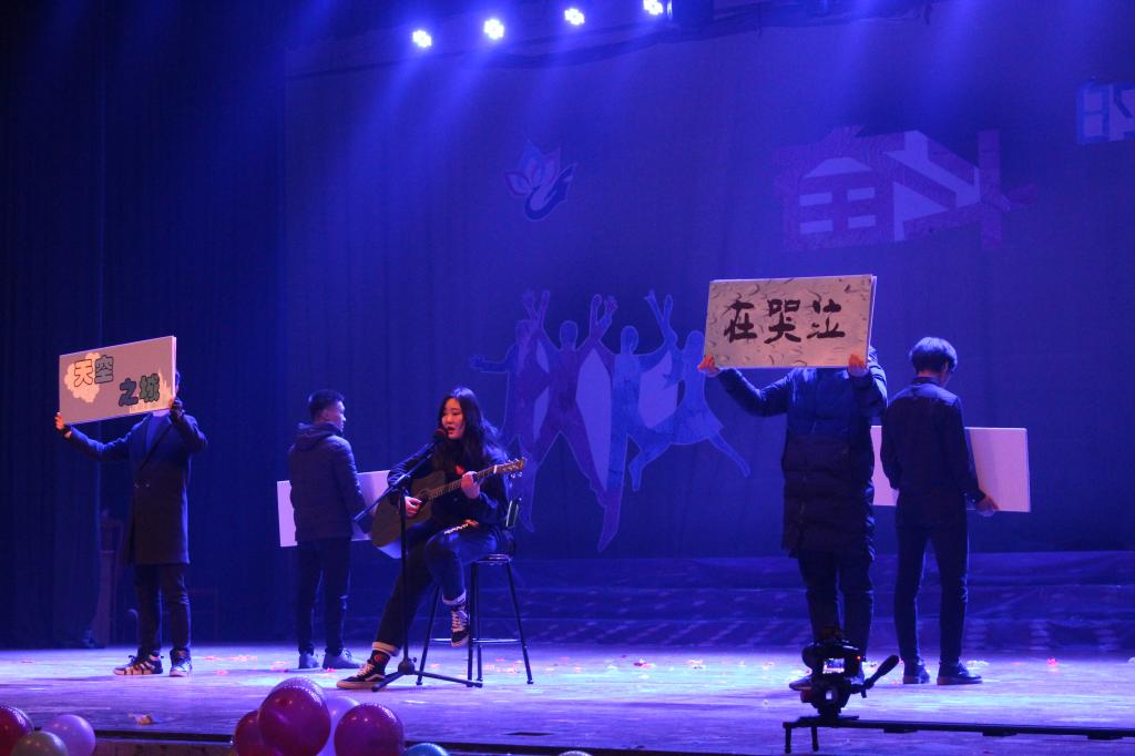 晚会在一段热辣的开场舞中拉开帷幕,晚会节目丰富,趣味横生,幽默的小品,逗乐的相声,感恩祖国的诗朗诵,创意的rap表演,15级员工和辅导员代表朗诵的《怀旧》展现我系员工对友情、师生情的珍惜和感动。一首古典舞曲《青花瓷》展现着东方优美神韵。其中,系副主任彭芳的一首《美酒加咖啡》伴随着全场的手机闪光灯,使气氛达到了高潮。整场晚会歌曲联排,精彩纷呈,赢得台下阵阵掌声与欢呼声。一首《我相信》为本场晚会划上了圆满的句号,歌声中饱含着铿锵的自信,绽放着梦想的光芒。今夜的晚会是辞旧迎新的晚会,是回顾过往继续前行的晚会,更是送别15级青春起航,梦想飞翔的晚会,也是迎接17级创造辉煌,铸就梦想的晚会。