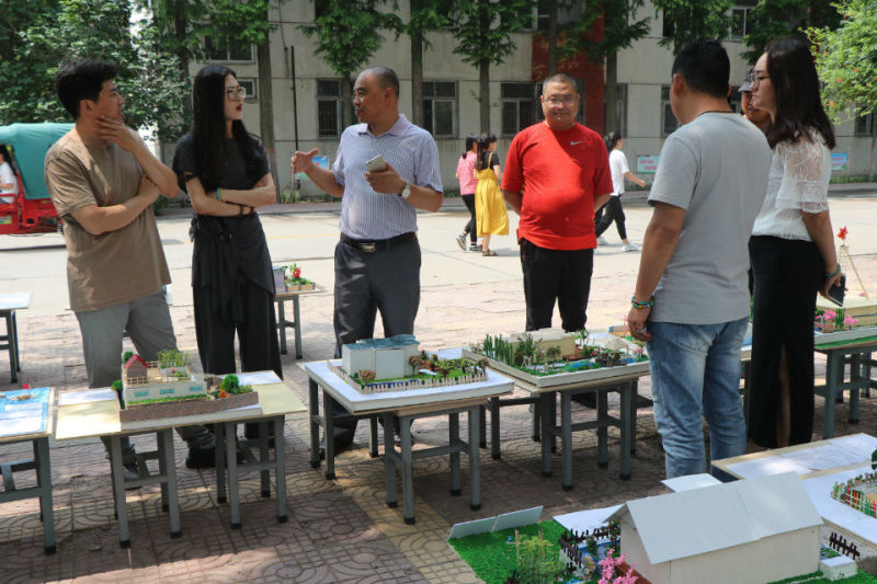 6月22日上午,yl23411永利16级环境艺术设计专业和室内艺术设计专业《模型制作二——庭院景观模型制作》一课一展在美术楼前开幕,yl23411永利主任王群星、系班子成员及师生共同参观了展览。
