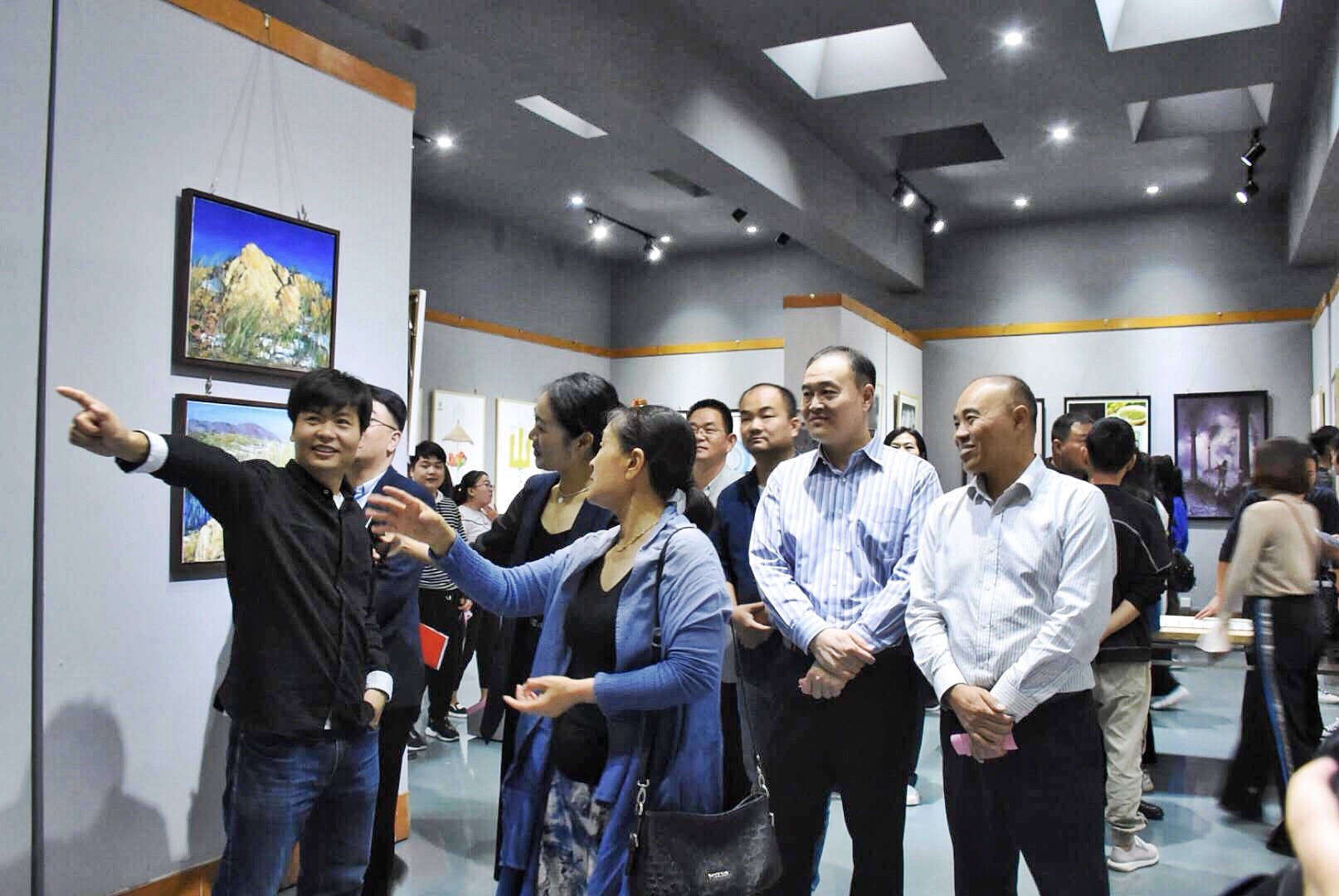 王群星在开幕词中说:“yl23411永利的发展与改革开放伟大进程同频共振。自1992年美术专业创建,到今年迎来第一届本科生, 中间经历“两校合并”“招生低谷”“教学改革”……等等,有曾经的辉煌,也有困难与挑战。近几年,在公司党委领导下,励精图治,革故鼎新,专业建设、科研、校企合作和服务地方经济等方面都取得优异的成绩,我系发展又迈上新的台阶。教师作品展是我们的“规定动作”品牌活动,教师们每年都要利用暑假外出学习、到企业实践,上山下乡深入生活扎根人民,结合本专业每人都精心创作出两幅作品,集中展示,相互交流,共同进步。”