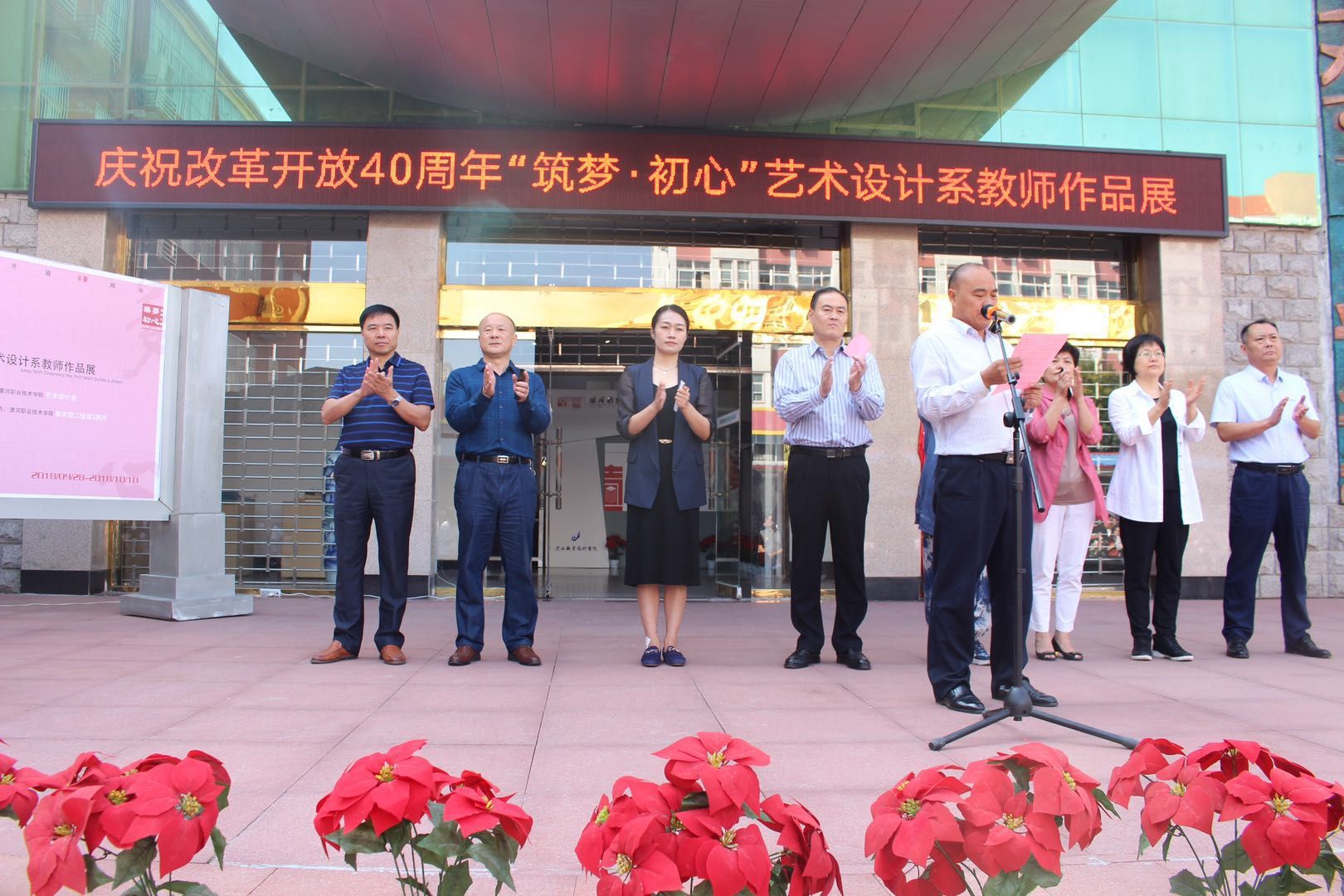 2018年9月28日上午,庆祝改革开放四十周年“筑梦-初心”yl23411永利教师作品展在美术馆开幕。市美术家协会主席、yl23411永利名誉主任韩慧珺、公司纪委书记薛存心、共青团漯河市委副书记刘雯雯以及公司相关处室负责人、漯河市青年企业家协会的企业家代表、yl23411永利近千余名师生参加了开幕式。纪委书记薛存心宣布展览开幕,系主任王群星致开幕词,副主任顾翔主持展览开幕式。