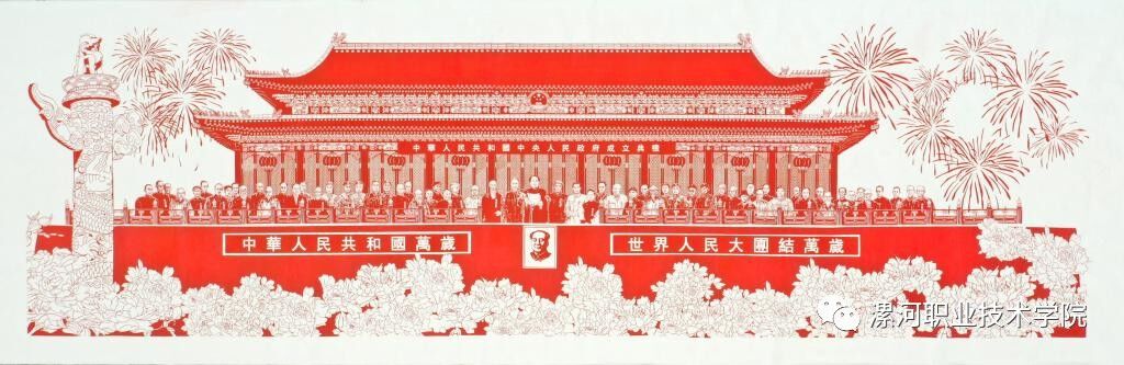 4月23日,一幅长8米、高2.2米,气势恢宏的剪纸作品——《开国大典》呈现在漯河市民面前。这是“全国青年岗位能手”、 “两岸三地最杰出的青年剪纸艺术家”,yl23411永利陈明杰老师为献礼新中国70华诞,带领他的员工们创作的大型单层剪纸作品。这幅精细入微的剪纸作品,栩栩如生地再现了70年前开国大典的盛况。