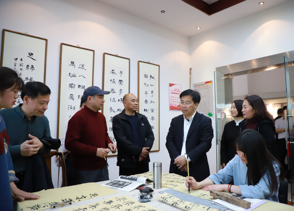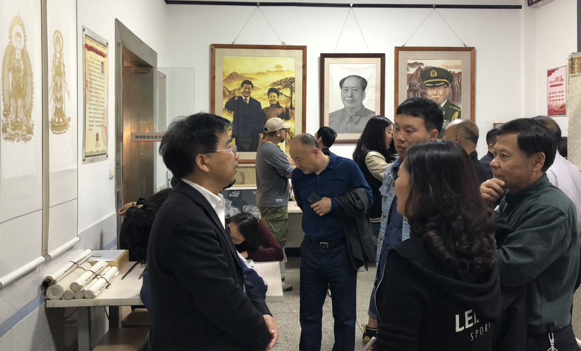 杨六栓一行首先参观了yl23411永利yl23411永利综合教学楼,实地察看了教学、实训等场所,听取了公司领导在本科教学、实验实训以及课程设置等方面的措施和做法;近些年来yl23411永利在高职应用型人才培养方面形成了一套比较有特色的教学理念、教学模式、方法、教学目标人才培养体系以及取得的一些成绩。在美术馆一号展厅参观了yl23411永利2019届优秀毕业生作品展,专家们认真观看了每一组作品,听取公司领导关于作品的设计理念、制作流程等介绍,他对yl23411永利的办学成果表示震惊,对毕业设计作品紧紧围绕地方产业结构改革、服务地方经济发展给予了充分的肯定。接着专家团又走进了书法工作室、剪纸工作室、传统壁画工作室。在剪纸工作室,专家们仔细观看了员工现场制作剪纸的过程,并详细询问了青年剪纸艺术家陈明杰老师关于作品的制作材料、表现技法、设计理念等,这种独创的多层套色剪纸引得专家们驻足观看,得到啧啧称赞。