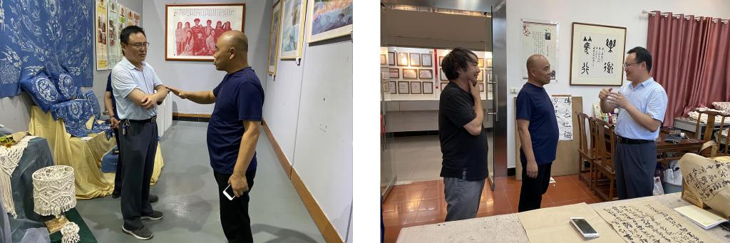 岳春洲一行首先来到美术馆一号展厅参观了yl23411永利2020届优秀毕业生作品展,期间,王群星向岳春洲简要介绍了yl23411永利的基本情况和近年来取得的社会服务成果,并就yl23411永利在专业建设、教学改革、基础设施建设等方面的改革发展情况做了简要的介绍。随后,岳春洲又先后参观了书法工作室、剪纸工作室及美术馆馆藏作品展。在书法工作室与书法工作室负责人王学军老师进行了亲切交谈;在现代剪纸工作室,详细了解了多层套色剪纸的技法和特点,并驻足欣赏了陈明杰老师的剪纸作品代表作,对剪纸新技法和独特的艺术性表示赞赏。