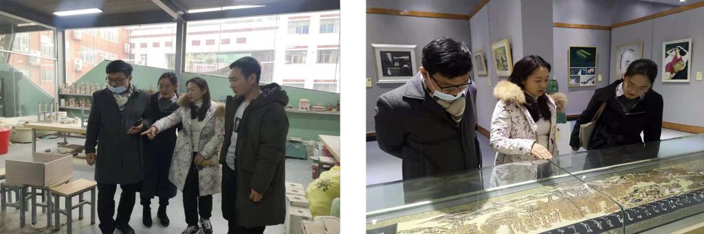 随后,厉海涛一行还参观了教师作品展、陈列展以及平面设计、雕塑陶艺、剪纸等特色工作室。