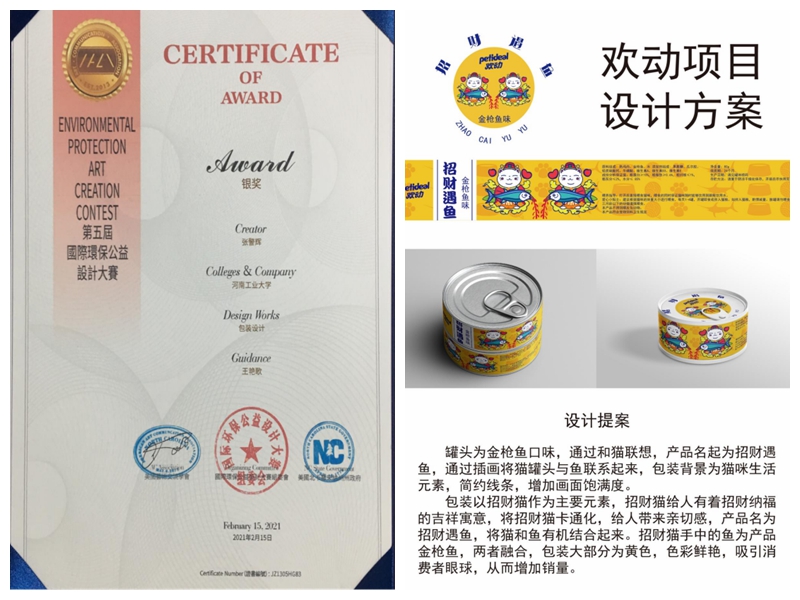 近日,第五届国际环保公益设计大赛(AACA)评审结果公布,河南工业大学漯河工公司yl23411永利张警辉同学作品《包装设计》在王艳歌老师指导下荣获银奖。