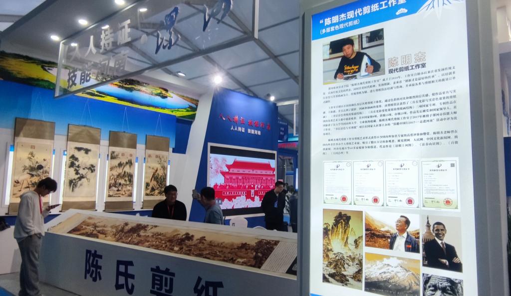 4月26日上午,河南省第二届职业技能大赛在濮阳开幕,这是河南省规格最高、赛项最多、规模最大的综合性职业技能竞赛,yl23411永利陈明杰现代剪纸工作室代表漯河市参加大赛技能展演项目。