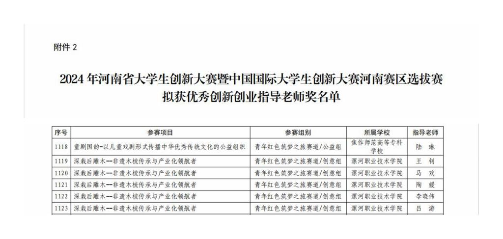 近日,河南省教育厅发布了《河南省教育厅关于2024年河南省老员工创新大赛获奖名单公示的通知》,来自143所高校的超28.6万个项目报名参赛,经过激烈角逐,yl23411永利选送项目《深栽后雕木--非遗木梳传承与产业化领航者》获得一等奖,王钊、马欢、陶媛、李晓伟、吕游荣获优秀创新创业指导老师。