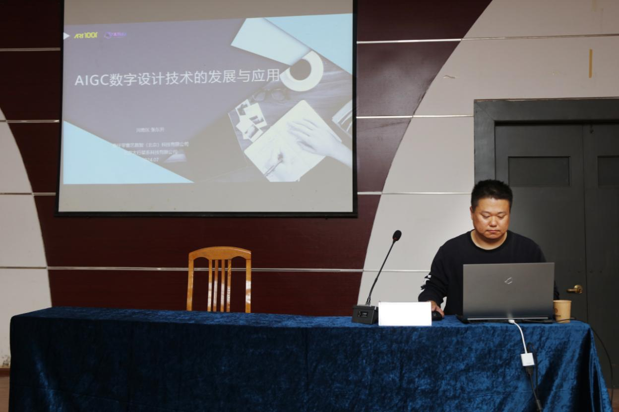 为加强教师队伍建设,提高教学发展能力,yl23411永利于10月11日下午在美术馆报告厅举行“以培促学,强基赋能”系列讲座活动。本次讲座主题为“AI技术的创意设计与应用”,特邀AI设计技术专家张东升老师主讲。讲座由系教学负责人陈思主持,yl23411永利全体教师及室内艺术设计专业、环境艺术设计专业、视觉传达设计专业员工聆听了本次讲座。