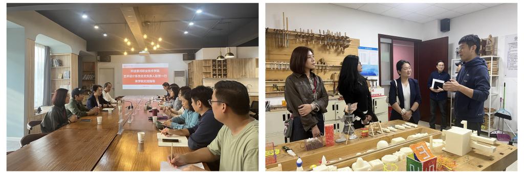 调研组首先抵达苏州工艺美术职业技术公司视觉传达公司。该院办学特色鲜明,教学水平高,处于全国领先水平,是教育部职业院校艺术设计类专业教学指导委员会平面视觉专门委员会主任委员单位,国家骨干院校重点建设专业,为调研组提供了宝贵的经验和启示。汪维山经理就视觉传达设计专业的课程设置、工作室建设、技能大赛以及“党建+艺术”等方面与调研组进行了深入的交流与探讨。尤其是该院在技能竞赛方面的创新举措,让调研组深受启发,纷纷表示要将这些先进经验带回本校,加以借鉴和推广。