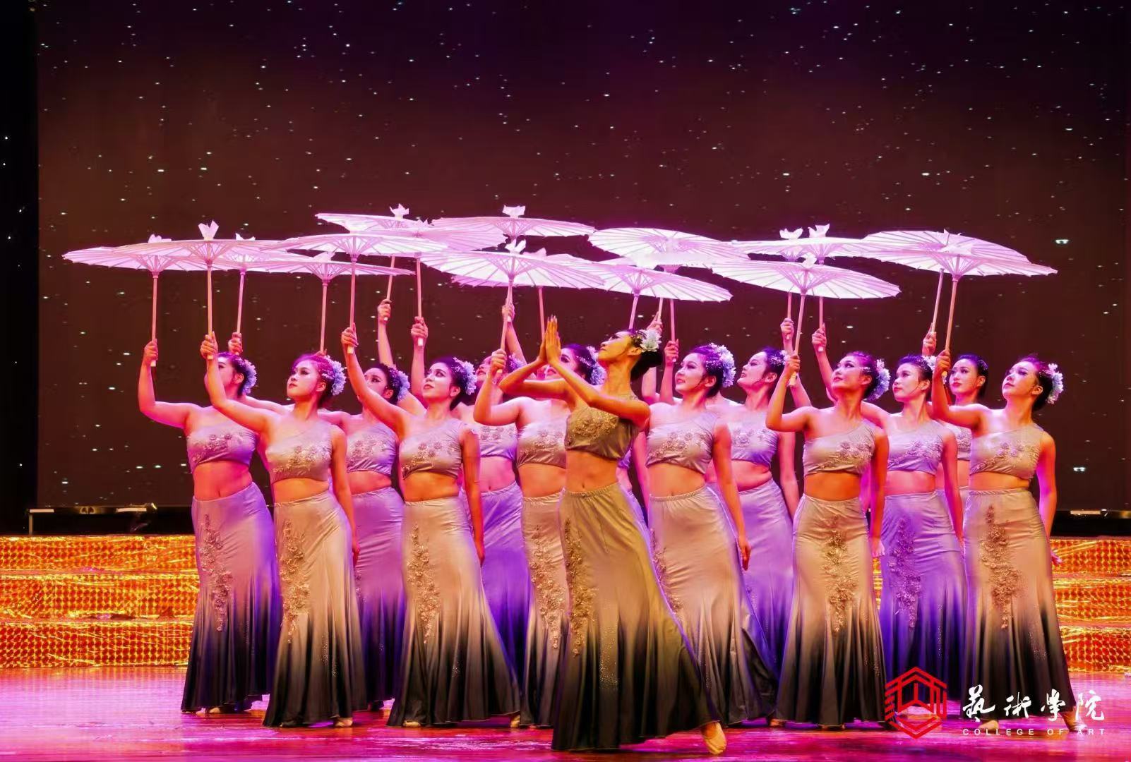 舞台上,灯光璀璨,员工们身着绚丽的服饰,以曼妙的舞姿、深情地演绎。《花腰傣》《生命的摇篮》展现了傣族舞蹈的柔美轻盈,《鼓声响起的地方》演绎出了维吾尔族舞蹈的热情奔放,《彝裳群影》则表现了彝族舞蹈的活泼风趣,每一个民族舞种都以其鲜明的特色展现了中华民族多元的文化和深厚的底蕴。古典舞《飞鸟髻》《浓妆淡抹总相宜》《踮步桥水清悠悠》再现了具有悠久历史的中国古代宫廷舞蹈。现代舞《觉醒年代》《浪花》通过创新的编排和对舞蹈语言的探索,不仅体现了同学们对舞蹈艺术的深刻理解,也展示了他们在舞蹈创作上的创新精神和实践能力。