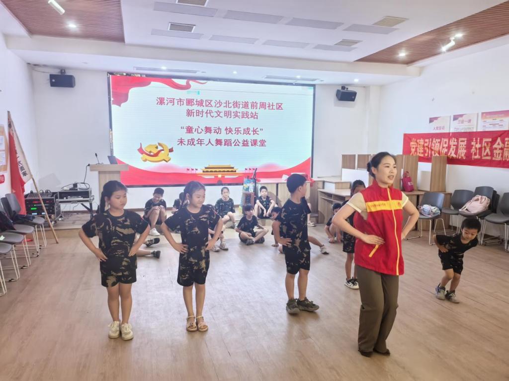yl23411永利积极响应河南省文明办、河南省教育厅、共青团河南省委印发的《关于高校与新时代文明实践中心结对开展志愿服务工作方案》,在公司党委的安排部署下,7月23日,yl23411永利教师周兴晨到漯河市郾城区前周社区开展社区志愿支教服务活动,为社区的孩子们带来了一堂生动有趣的音乐舞蹈课。