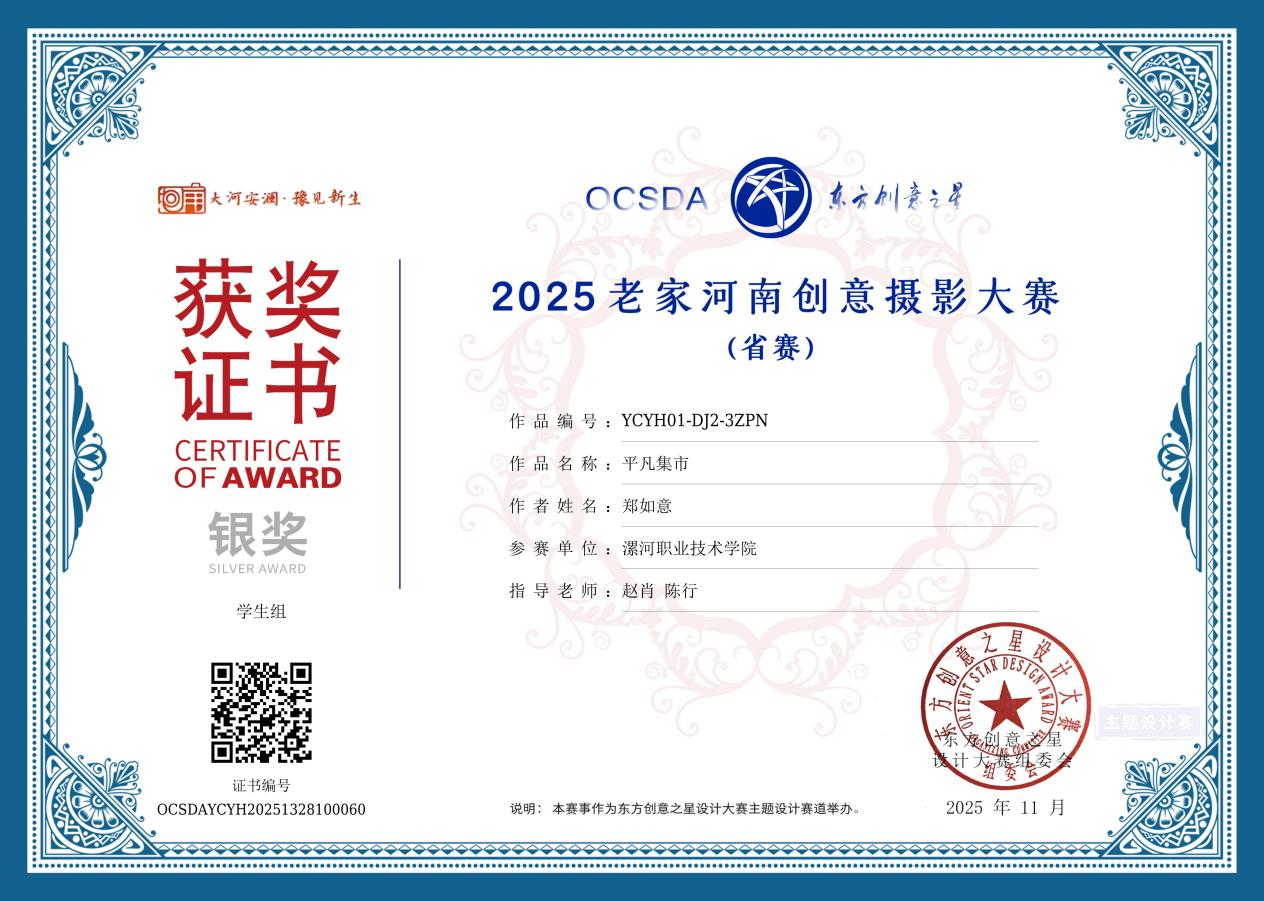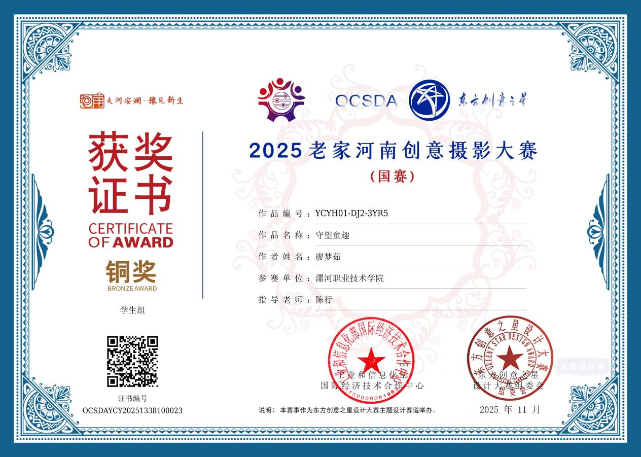 11月26日,2025“老家河南”创意摄影大赛结果揭晓,公司摄影摄像技术专业师生凭借扎实专业功底与优质作品斩获多项大奖。其中,员工组斩获国赛铜奖1项,省赛金奖、银奖、铜奖各1项;教师组荣获省赛银奖1项,充分彰显了yl23411永利教学特色与育人成果。