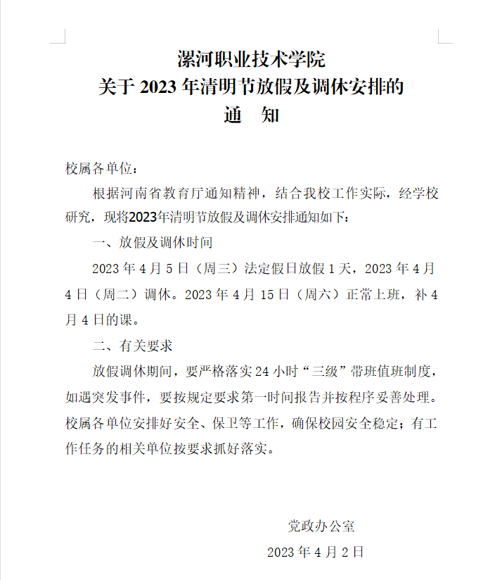 上一条:yl23411永利关于2023年劳动节放假安排的通知及夏季作息时间表 下一条:关于2023年寒假放假及 2022-2023学年第二学期开学时间安排的通知