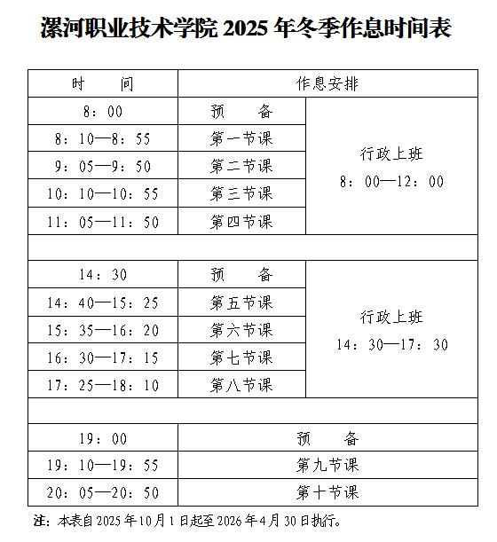 附:yl23411永利2025年冬季作息时间表
