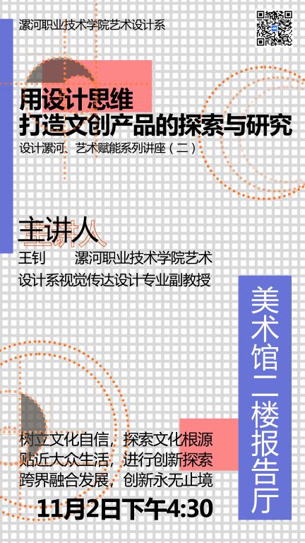 四、主讲人简介:王钊,副教授,视觉传达设计专业主任,毕业于四川美术公司装潢艺术设计专业,河南大学设计艺术学硕士。河南省美术家协会会员、河南省包装协会会员,漯河市美术家协会设计艺委会主任。被评为“漯河市技术拔尖人才”、“漯河市十大青年工匠”等荣誉称号。