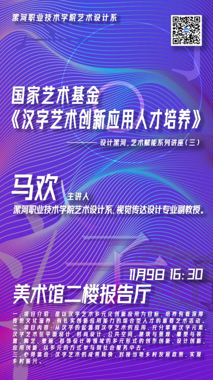 四、主讲人简介:马欢,副教授,毕业于武汉理工大学艺术设计公司视觉传达设计专业。在教学期间参加校级精品课程建设,发表论文十余篇,其中核心期刊论文三篇。论文《传统文化在广告文案写作中的应用》获得第七届全国美育成果奖一等奖,论文《注重功能与把握整体——独立公司书籍装帧设计教学改革与实践研究》在高校第五届美术与设计大展上获得优秀奖。论文《校企合作模式下艺术设计专业教学方法研究》、《应用型艺术设计人才校企合作培养模式研究》在高校第六届美术与设计大展上获得两项二等奖。个人作品在公司空间青年美术作品展中获得多项奖项,其中作品《山村秋色》获得第三届公司空间青年美术作品展的铜奖。指导员工的毕业设计和论文,获得由省教育厅授予2011湖北省优秀学士学位论文指导教师奖。主持并参与多项省级课题的研究工作。